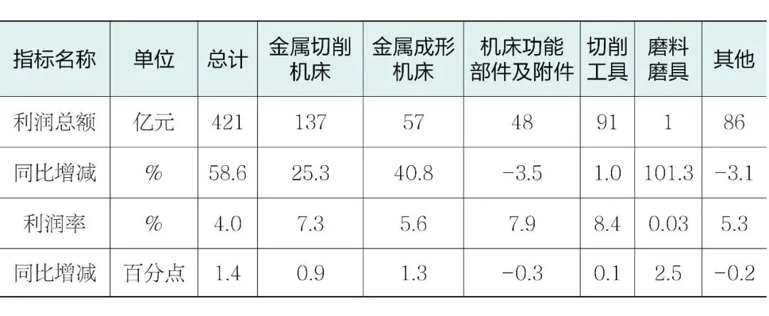 表2 2025年机床工具行业及主要分行业的利润总额、利润率情况