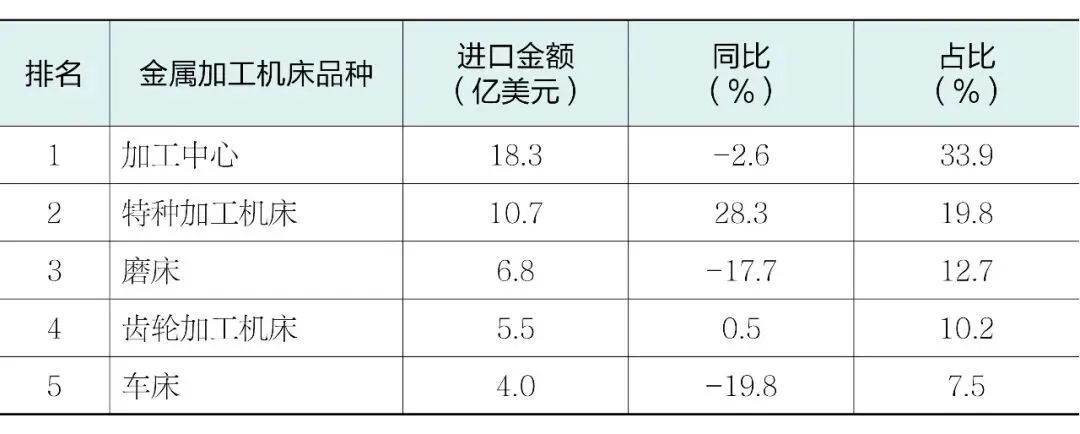 金属加工机床进口前五位的品种及其进口金额,详见表7。