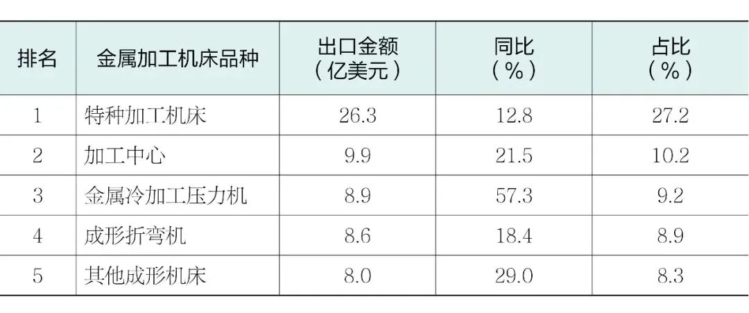 在外部环境不稳定不确定性明显上升的背景下,机床工具产品出口展现出较强的韧性和活力,实现6.7%的增长,同比扩大2.7个百分点。