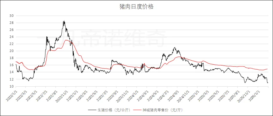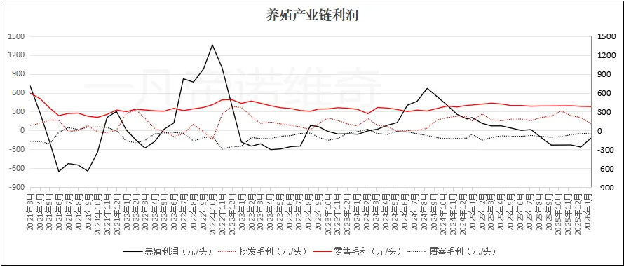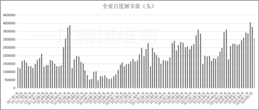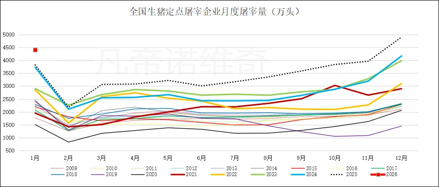 2026年1月全国生猪定点屠宰企业屠宰生猪4404万头,环比下降10.0%,同比增长15.4%。