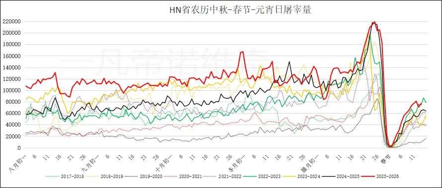 2026年春节前30天HN省共屠宰生猪414.2万头,同比增长9.67%。