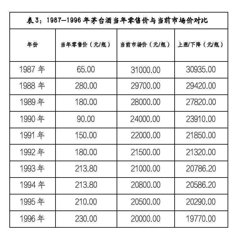 ▋ 贵州茅台酒(1985-1996)市场价值评估