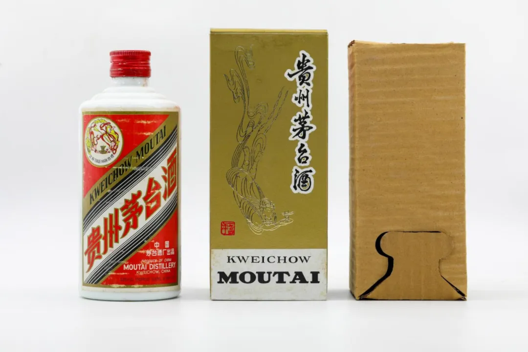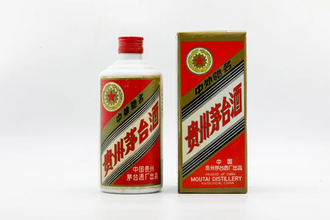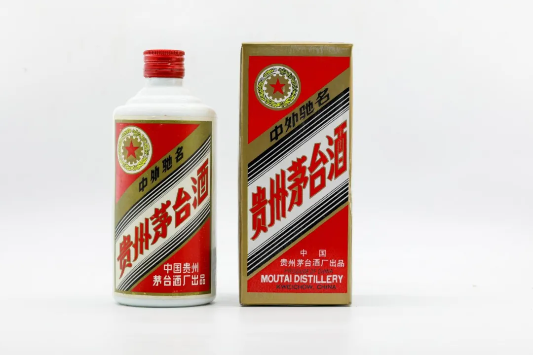 1991年1月8日,五星标识茅台酒彩盒及正标、背标全面改版更新,线条图案轮廓更清晰,正标右下角厂家标注第一行为“中国”,第二行为“贵州茅台酒厂出品”,下方增加酒精度及容量信息标注。