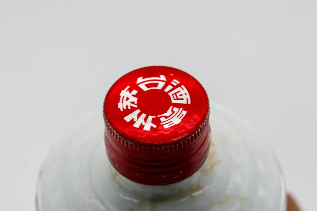 特征:1994年12月份以后的茅台酒瓶盖顶部的“贵州茅台酒”由原来的平面更改为凸起,瓶盖与原来的红色相比略浅。