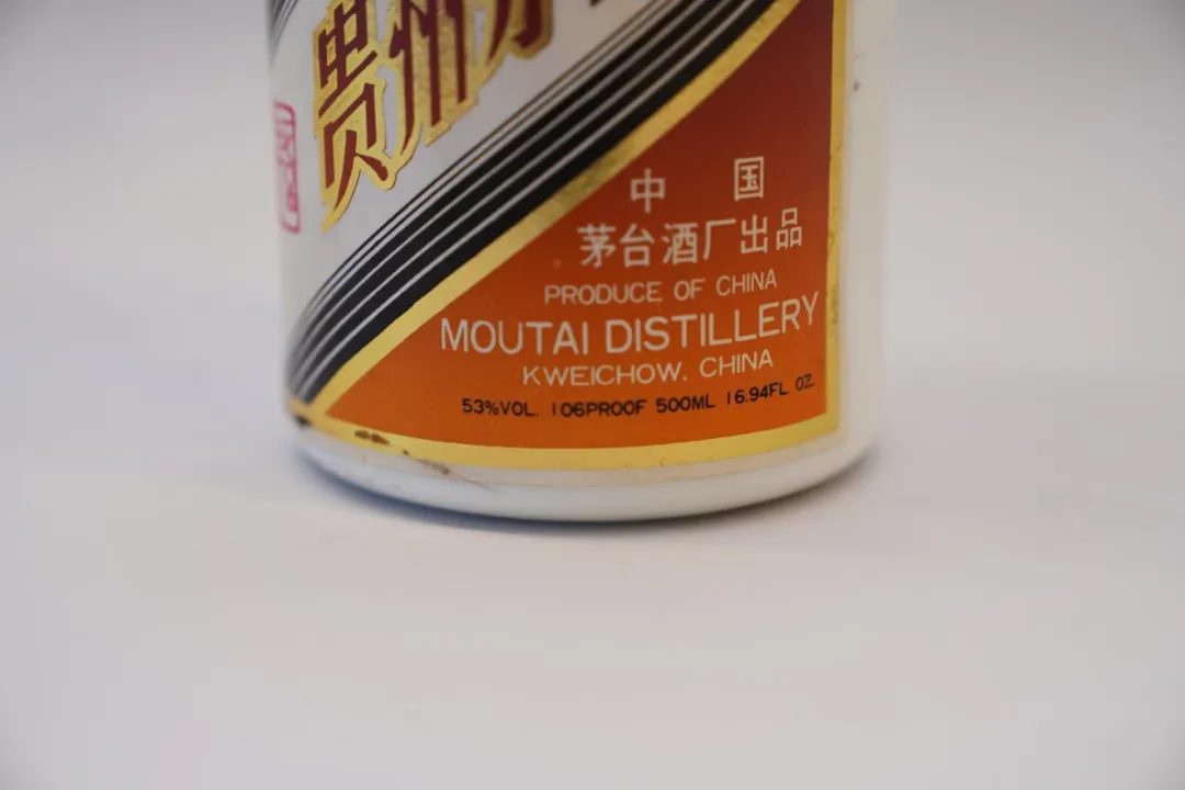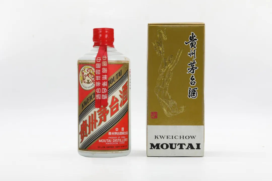 特征:是年,还有部分五星标识贵州茅台酒(五星正标、飞天背标)使用飞天牌的背标,红丝带与五星标识相同,一条书“中国贵州茅台酒”另一条书“中国名酒世界名酒”。