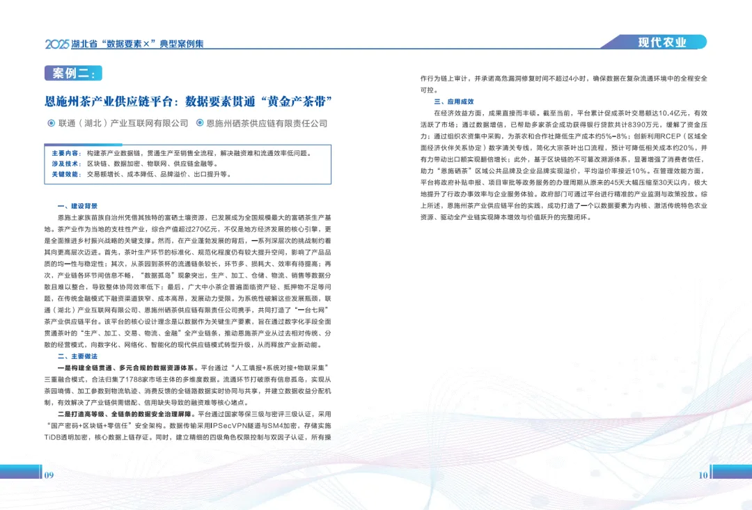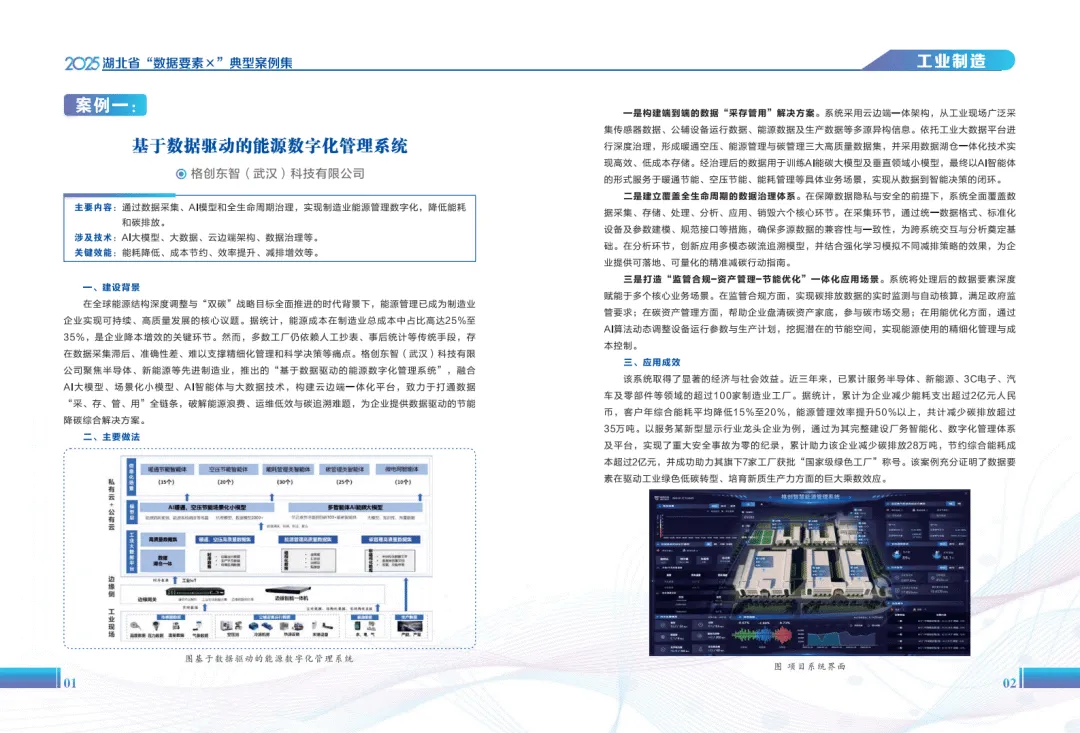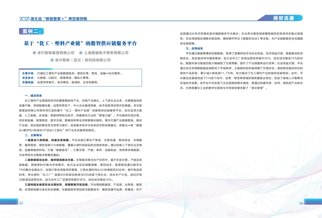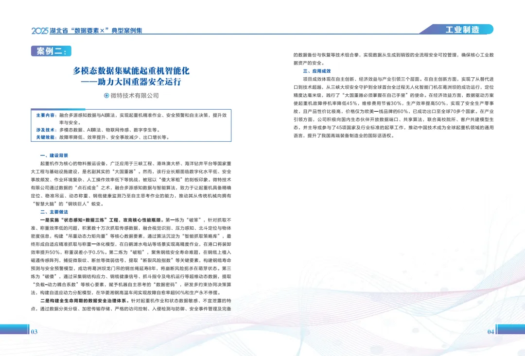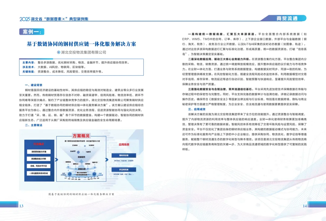 《2025年湖北省“数据要素×”典型案例集》系统呈现了湖北省在数据要素市场化配置改革中的实践成果,展现了数据作为新型生产要素在赋能经济社会高质量发展中的多元价值。案例覆盖工业制造、现代农业、商贸流通、金融服务等十六个领域,通过梳理不同场景下的数据应用模式,为数据开发利用提供了丰富参考。