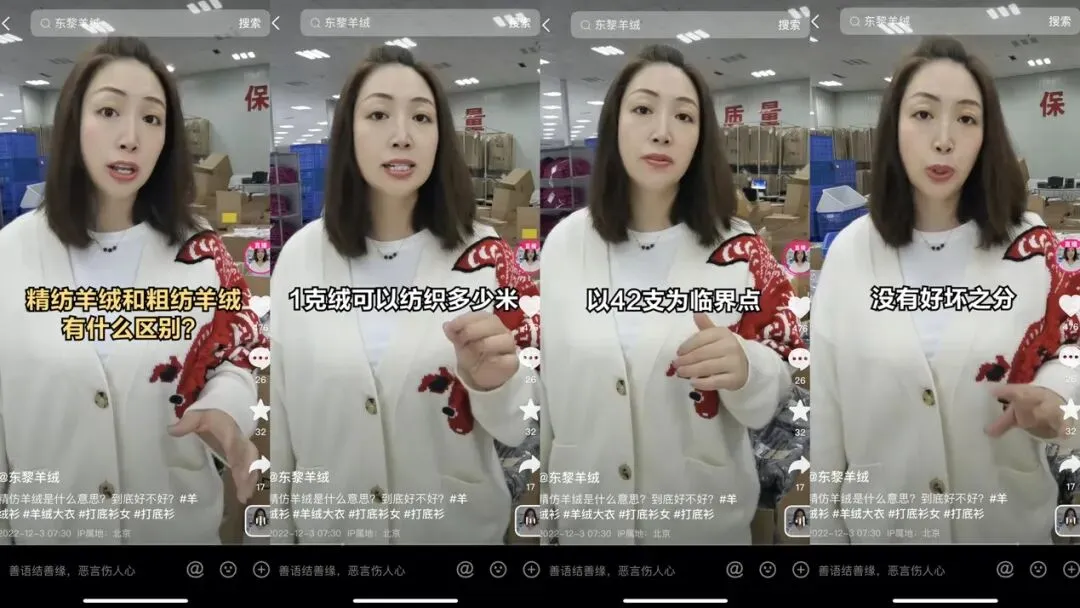 东黎羊绒在短视频中介绍精纺、粗纺羊绒的区别