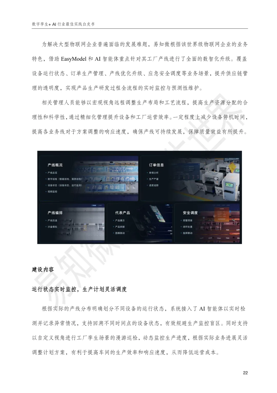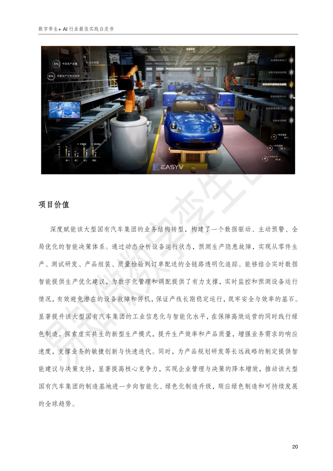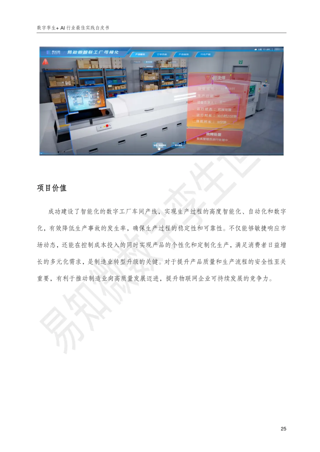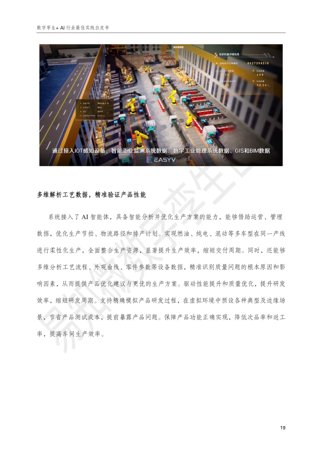 《数字孪生+AI行业最佳实践白皮书》由杭州易知微科技有限公司编制,旨在呈现数字孪生与人工智能深度融合在多个行业的落地实践与价值,推动“让每一个组织和个体都看见并受益于数字化”。易知微作为袋鼠云旗下空间智能全资子公司,依托EasyModel、EasyTwin、EasyV、EasyHuman等全栈产品,构建起覆盖三维模型生成、数字孪生业务开发、低代码可视化搭建与人机智能交互的生态闭环,融合3D高斯、NeRF、有限元仿真、孪生智能体、AI数字人等前沿技术,形成全流程一站式开发能力,已在能源矿产、先进制造、水利水务、交通运输、文旅赛事、农牧生产、医药科研等领域服务3800+客户。