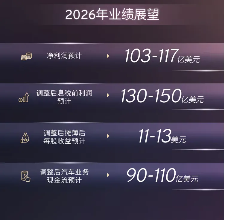 ? 调整后息税前利润目标:130-150亿美元,约合人民币902.9-1041.8亿元,稳步超越2025年的882亿元;