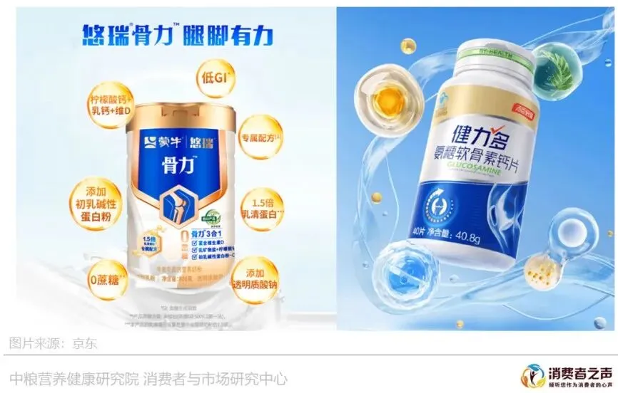 2024年以来,对于身体机能老化,行动不便的老年群体,骨骼与肌肉健康正在成为他们最为关切的话题之一。2025年中国衰老标志物联合体发布的骨骼肌衰老标志物专家共识当中就提到,随着年龄增长,中国60岁以上老年人肌少症发病率约10%以上,已成为一个重大的健康和公共卫生问题。而传统补钙产品往往难以应对"肌少症+骨质疏松"的共病难题。针对此类问题,蒙牛以"精准营养"为锚点革新适老食品生态,根据中国中老年人的特有营养需求,将蛋白质、钙、硒、镁等营养成分组合成专属配方,推出悠瑞骨力奶粉,为中老年人的肌肉健康提供保障。同时,蒙牛牵头中老年专属营养调制乳粉标准的编制,为银发营养食品市场竖立科学标尺。针对老年人关节磨损的问题,汤臣倍健研发了含有氨基葡萄糖和硫酸软骨素的氨糖软骨素保健品,有效地保护受损关节。通过与营养膳食产品相结合,这些保健品共同构筑起了骨骼肌肉健康的立体防护网。而这种精准营养解决方案也标志着适老食品正式进入循证营养的发展新阶段。