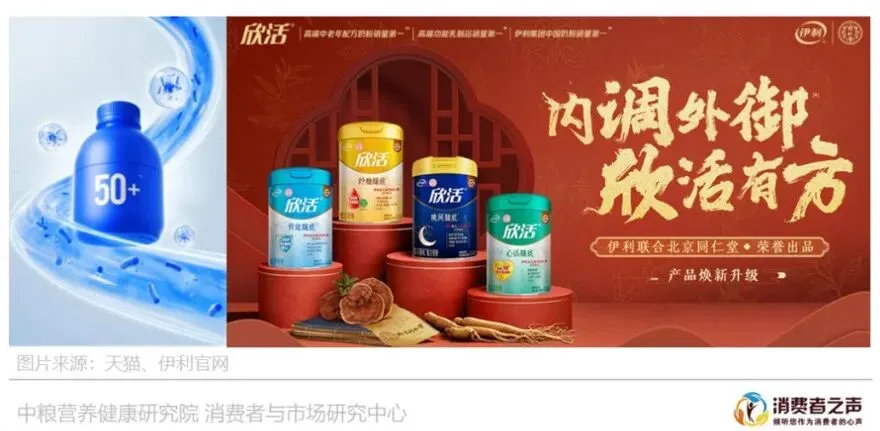 而老年人的消化问题,也与其肠道微生态失衡以及乳糖不耐受和高血糖等问题直接关联。针对此类复合型消化问题,WonderLab50+™益生菌专为银发群体设计了免冲泡即食粉末,在方便食用的同时,避免传统胶囊带来的不适感,减少服用负担。此外,WonderLab50+™益生菌在包装上还贴心地采用大字体和直观可视化指导,确保中老年消费者能够轻松理解使用方法,提升产品的易用性。与此同时,为了解决老年人高血糖相关代谢问题,伊利联合同仁堂品牌推出欣活纾糖膳底配方奶粉。这款产品在0蔗糖,低升糖指数,GI值=13.3的基础上,融入葛根、黄精等传统中式养生食材,搭配16种营养素构建科学配比。在为老年群体构筑体内健康管理体系的同时,更好地呵护老年人群血糖健康。