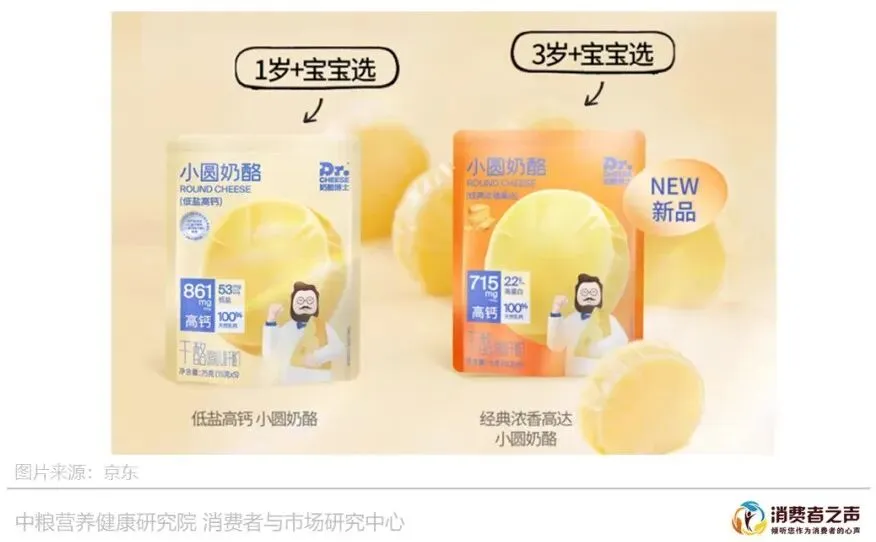 同时,在更加营养的零食产品类别中,我们也能看到分龄产品的创新。奶酪博士通过构建"维生素D3微囊化+酪蛋白磷酸肽+纳米钙"的金三角体系,在提升产品钙吸收率的同时,将含盐量降低至国标1/3,降低对孩童的刺激。这种兼顾功能性与适口性的设计,成功打破了儿童营养领域的"口感魔咒"。不止于奶酪,奶酪博士还同步创新了奶酪动物饼干、高钙奶酪泡芙、高钙奶酪奶贝等全系列产品,旨在全面拓宽儿童零食的营养化场景。