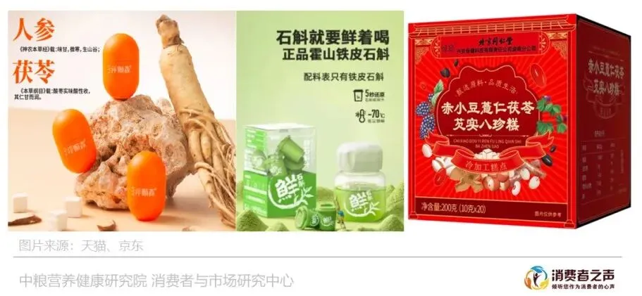 与此同时,传统中医药材通过与现代食品工艺的碰撞,创新的食饮产品出现在了越来越多的现代生活场景之中。精细化的食品加工理念,叠加中式传统滋补产品,产品的形态也有了显著创新。Focusen浮颗森开发的人参能量棒,通过低温萃取保留人参皂苷活性,配合现代工艺提升口感,将人参巧妙融入即食包等现代食品形态,成功打入户外运动、早餐、下午茶等场景,使传统补品转变为功能性零食,实现年销售额增长率连续三年超过150%。新中式养生滋补品牌斛妈妈则以“鲜石斛”为核心原料,借助低温锁鲜技术,搭配搭配豆浆、咖啡、牛奶等热门饮品,将铁皮石斛与药食同源的理念融入到日常生活。传统老字号同仁堂也通过复刻经典点心八珍糕,将现代工艺与古法智慧相结合。其在保留传统风味的基础上,精选坚果、果干等营养食材,使糕点在保留了松软绵密的口感的同时,提升了健康营养属性。此外其小袋装的设计满足了当代消费者对便捷与品质的双重追求,让这份百年传承的东方味道轻松融入快节奏的现代生活之中。