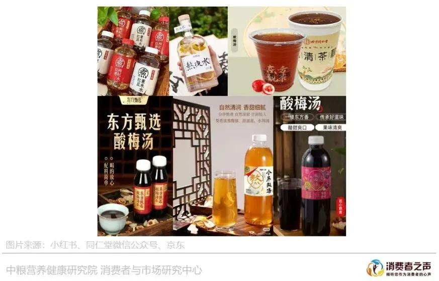 而在饮品领域,中西结合的创新更是层出不穷,越来越多的中式养生水接过了0糖饮料的接力棒,成为了创新的新方向。华润、永辉、东方甄选等渠道与乐源合作布局中式养生水。元气森林的元气自在水红枣枸杞、红豆薏米、山楂枸杞养生水接连成为爆品。同样,在线下茶饮领域,陆藜·开了个方子、椿风等品牌将桑叶、菊花、罗汉果与现代茶饮工艺结合,创造出单店日均销量300杯以上的养生新品类。同仁堂的"王炸组合酸梅汤"更以日均上万份的销量,在年轻人群中掀起打卡热潮。