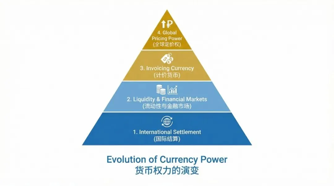 如果一种货币仅拥有结算权而无计价权,其国际化往往带有“虚假繁荣”的色彩。因为计价货币决定了谁来承担汇率波动的风险。当某种商品以你的本币标价时,你才真正获得了免于汇率震荡的豁免权。