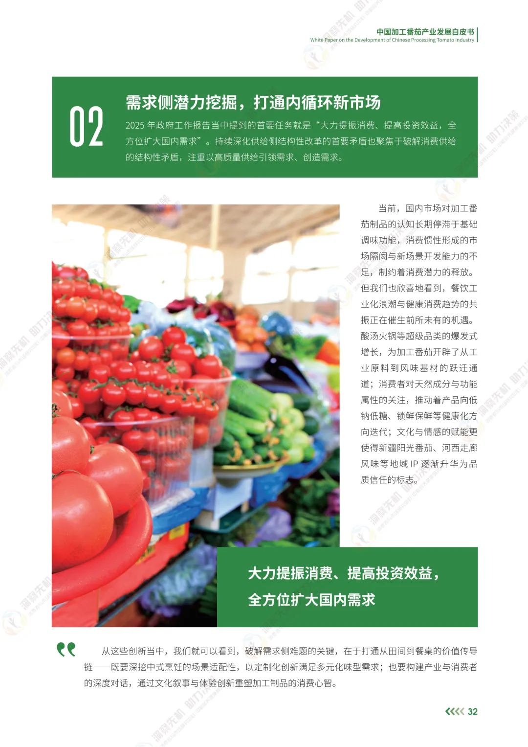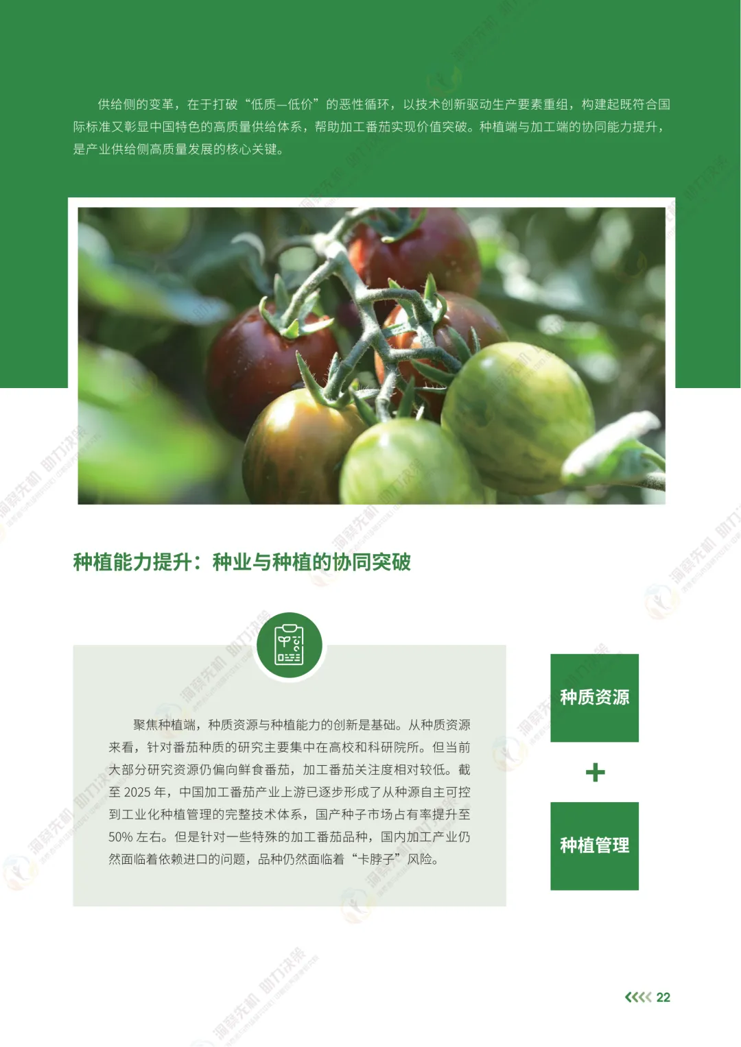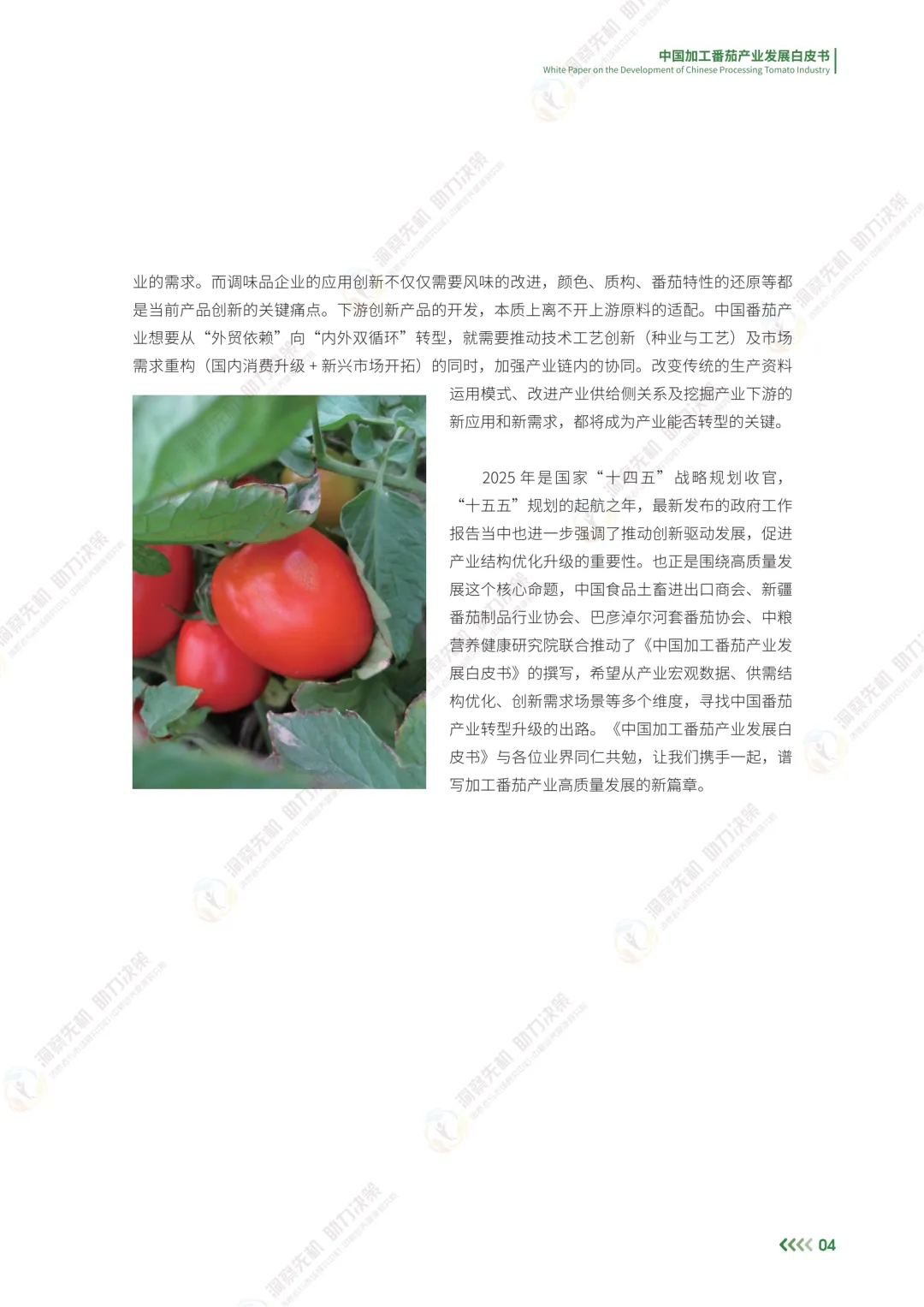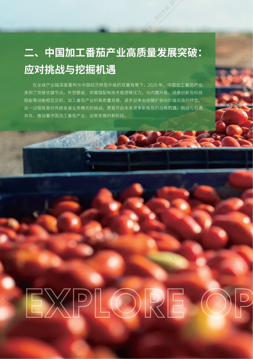站在2025年,展望未来,中国加工番茄产业的突围必然是供给能力跃进与需求生态重构的双向奔赴。在技术创新维度,种质资源的自主可控以及突围将成为争夺全球话语权的战略支点,智能制造与绿色工艺的深度融合则推动着生产范式向精密化、可持续化转型;在市场开拓层面,“内外双循环”的协同效应将愈发显著——对内通过场景创新激活内需市场,对外通过标准输出构建新兴市场联盟,形成全球化布局的新平衡。更为深远的是,产业升级的进程必将超越单纯的经济范畴:通过订单农业带动乡村振兴、以数字化转型促进城乡要素流动、借文化赋能提升地域品牌价值,加工番茄产业将逐步演化为连接农业生产、工业制造与消费升级的枢纽,成为践行农业现代化与高质量发展的典范。