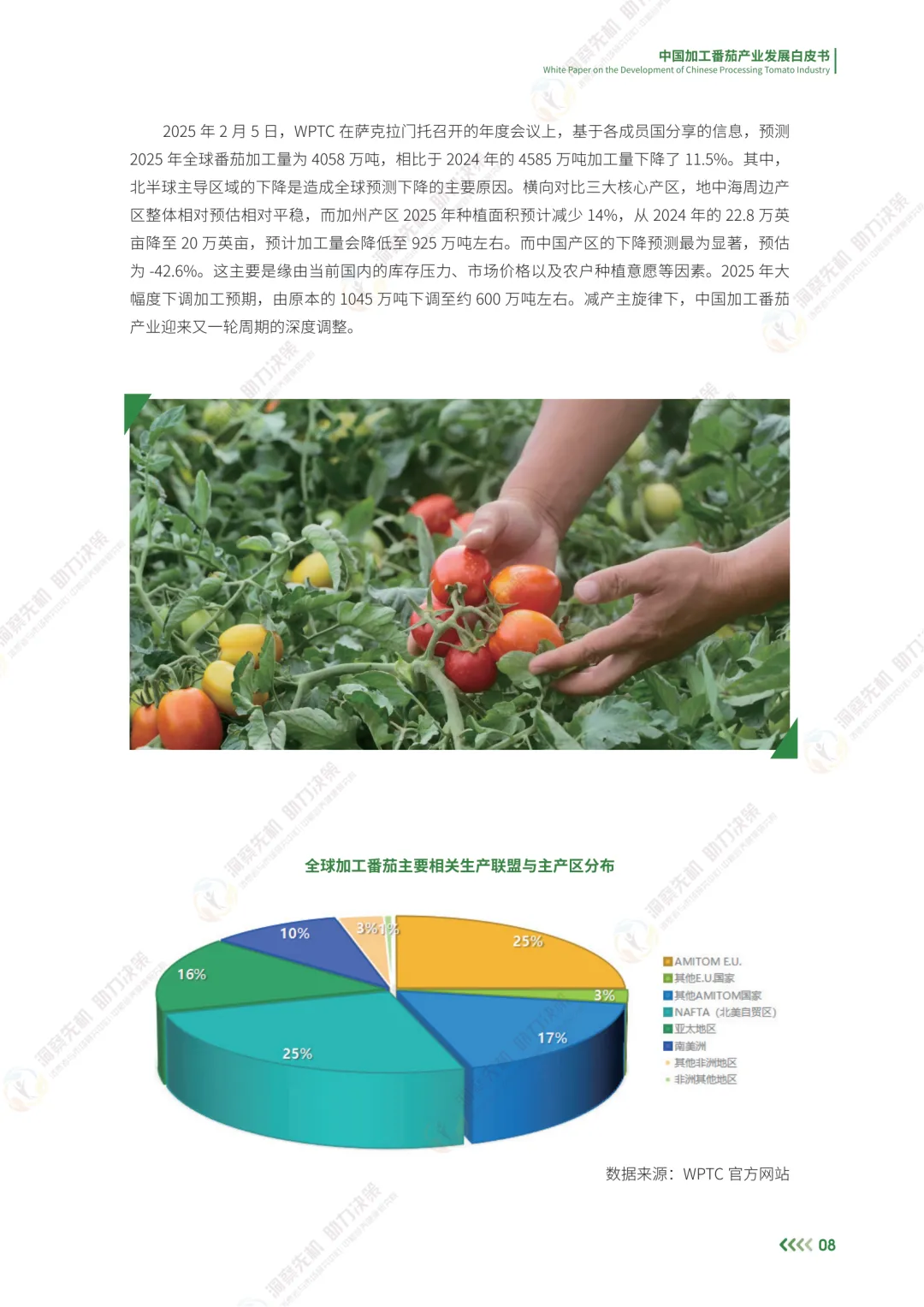 2024年开始,国内加工番茄产业受全球产业波动影响,进入下行周期,中国加工番茄产业的高质量发展正在面临全新的挑战。受北半球番茄加工产能收缩的影响,2025年全球加工量预计降至4058万吨,同比下降11.5%。减产主旋律下,中国加工番茄产业迎来又一轮周期的深度调整。