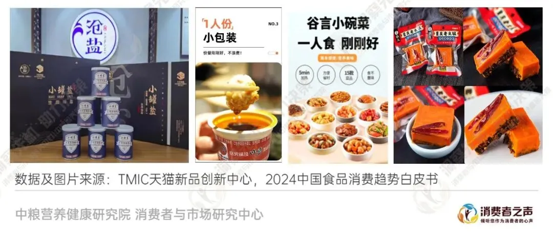 小规格设计成为了食品市场的一大趋势。随着家庭结构向小型化发展,以及独居人群不断增加,小包装食品的需求逐渐增强。预制菜、调味品和零食等小包装产品的销量明显上升,满足了单人或少量需求的消费者。图10 小规格调味,一人美味得心应手