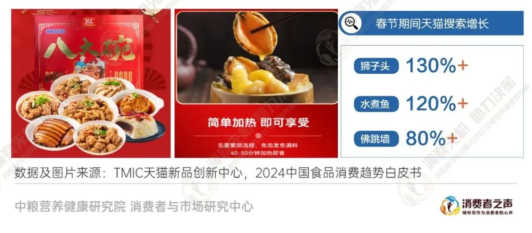 节庆和仪式食品市场持续增长。各地纷纷推出符合当地民俗特色的节庆食品,满足了人们对于传统美食的需求。尤其是预制食品在节庆场合的应用,不仅提升了运营效率,也保证了口味的统一和质量的稳定,受到了消费者的欢迎。图12 方便的家庭仪式感,家庭预制美食受欢迎