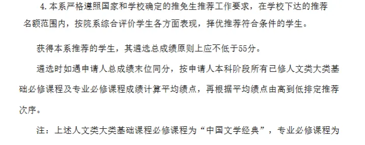获得本系推荐的学生,其遴选总成绩原则上应不低于55分。