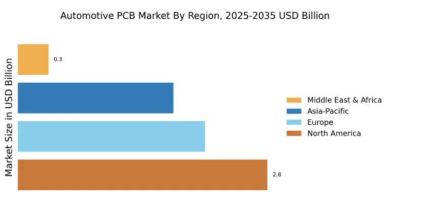亚太地区的汽车 PCB 市场增长迅猛,占据约 25% 的全球市场份额,汽车产量增加、居民可支配收入提升、中产阶级群体扩大是市场增长的核心驱动因素。中国、日本是该区域的主导市场,在汽车电子、智能汽车技术领域的投资巨大,同时政府出台利好政策、推出电动汽车激励措施,为市场发展赋能。
