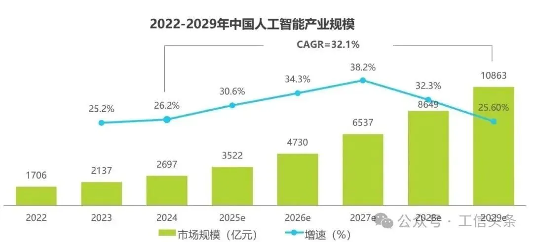 政策方面,国务院2025年8月印发的《关于深入实施“人工智能+”行动的意见》构建了顶层设计框架,明确推动AI与实体经济深度融合的发展路径。市场方面,生成式AI应用渗透率快速提升,截至2025年6月我国生成式AI用户规模达5.15亿人,普及率36.5%。技术方面,DeepSeek、通义千问等大模型实现突破,清华大学SALMONN音视频大模型在多项评测中超越GPT-4o等国际主流模型。三重动力叠加下,中国AI产业正从技术跟跑向部分领跑转变,2025-2035年市场规模复合增长率预计达30.6%-47.1%。