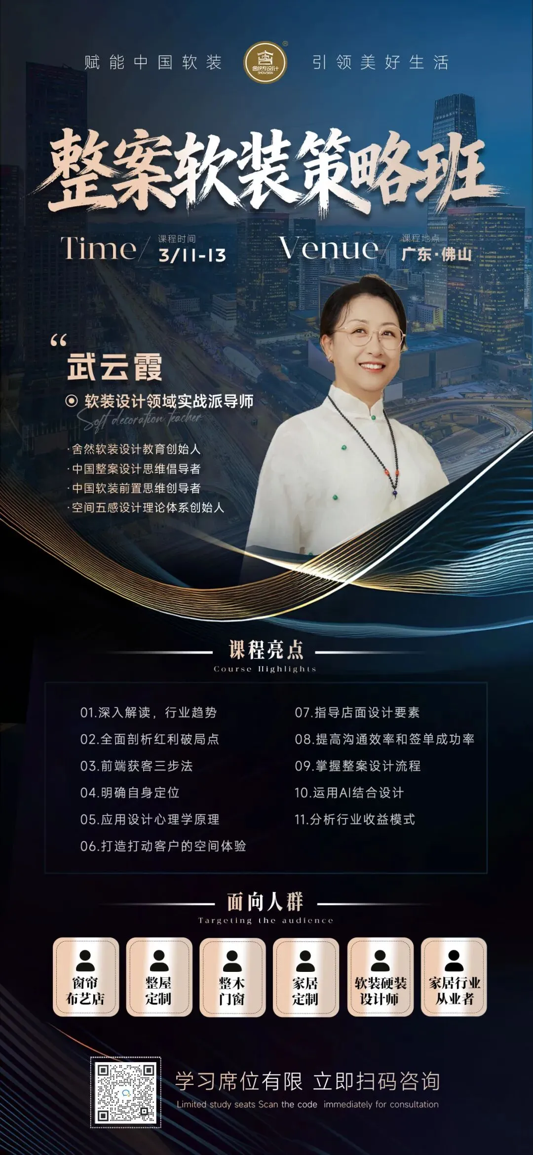 看清趋势,更要掌握落地方法。武老师从店面打造、AI应用、商业闭环三大设计趋势出发,为软装人拆解了从思维转变到实际操作的全流程方法,让趋势不再是“空中楼阁”,而是能落地、能变现的实操干货。