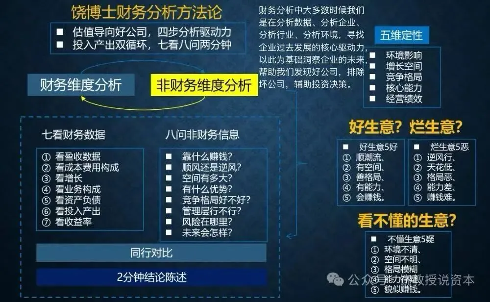 时刻牢记财务分析是可能性分析,结论是概率性结论,是特定场景下的满意选择;财务分析不是终点,需要迭代性跟踪。