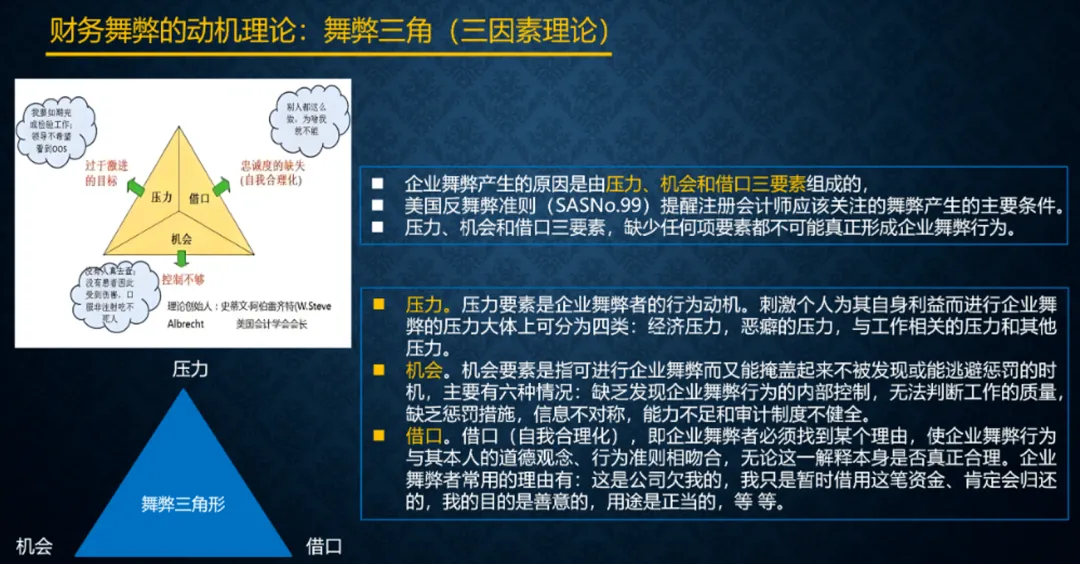 6、外部财务分析只能判定可疑而不能为财务造假定性,原因有二:第一,会计信息具有不对称性;第二,上市公司信息披露不完整。一种会计现象可能对应多种产生原因,造假是其中之一。作为外部财务分析者,我们不能像执法机关那样钻到结果的背后去调查。因而,通过外部财务分析可以发现造假的线索,作出疑似的判断。唯一可以为财务造假定性的是证监会。
