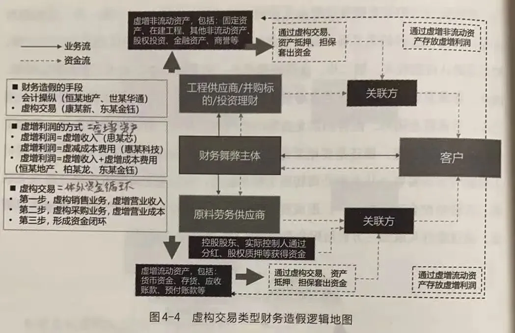 其次,作者引入财务舞弊的重要研究作为实务分析的基础,并结合案例对造假的核心手段——会计操纵和交易造假进行重点分析,总结出常见财务造假的逻辑链和造假方程式。