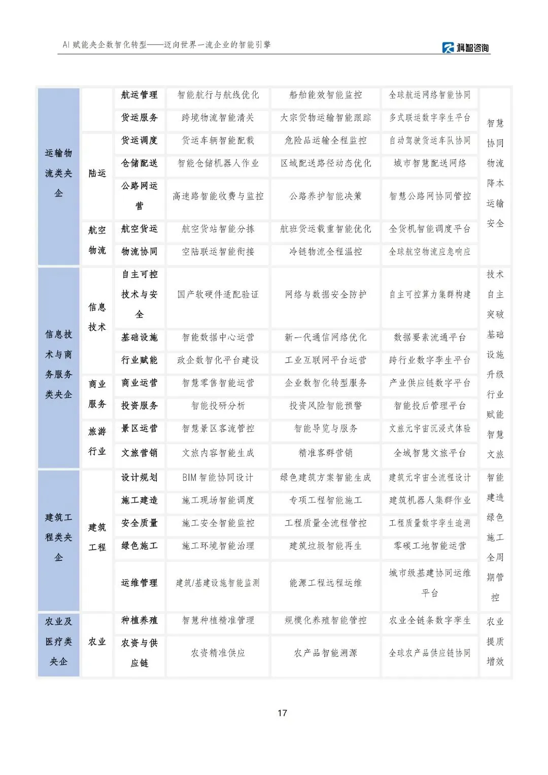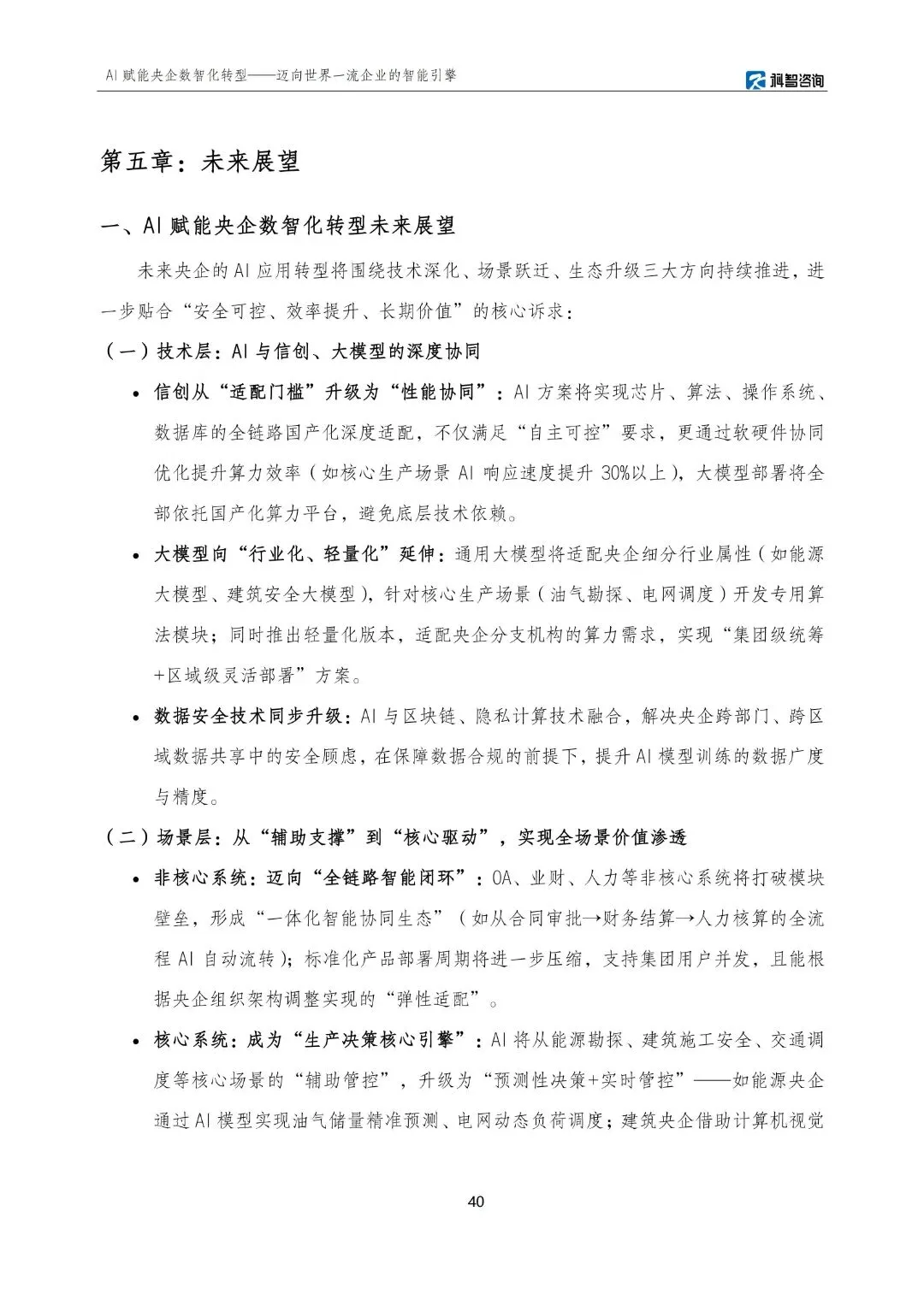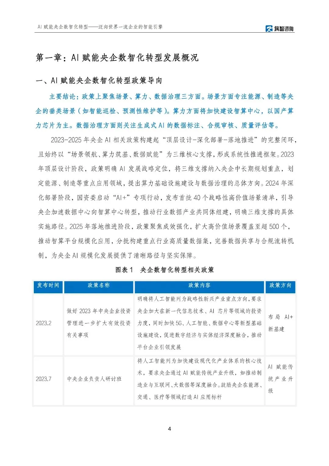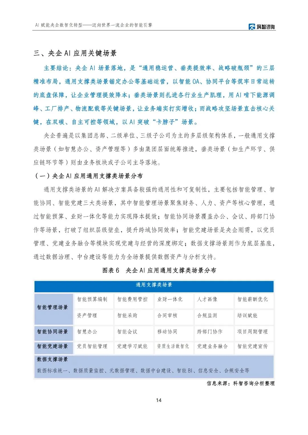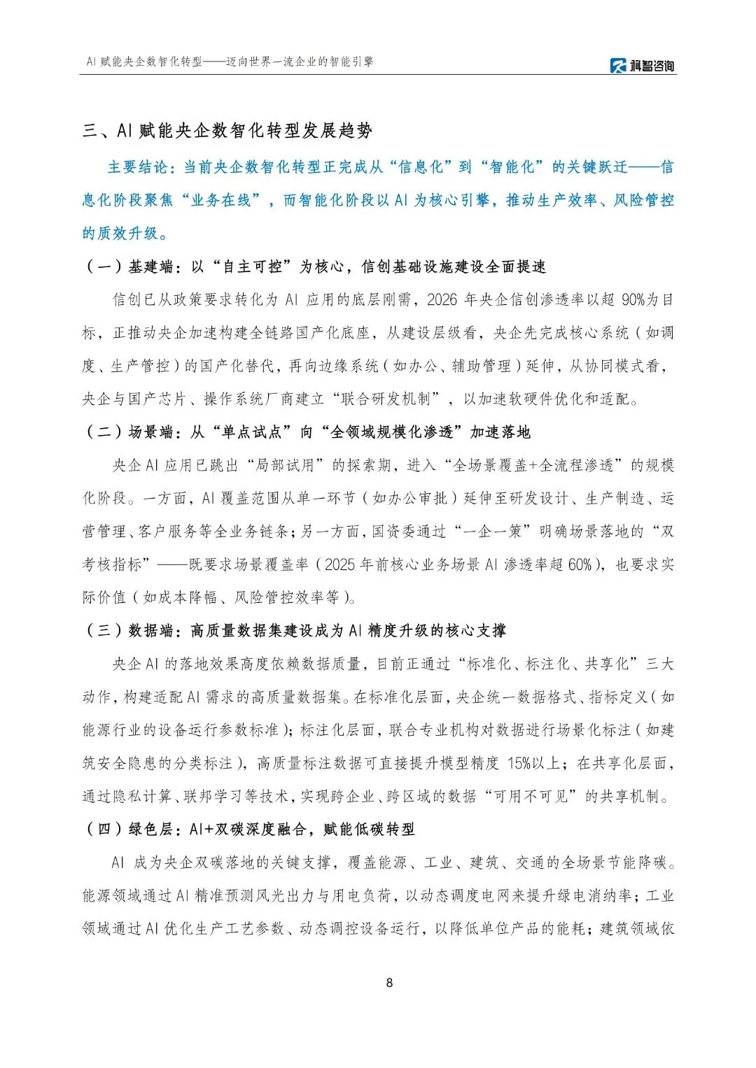 白皮书一方面展现了对央企数智化转型的深入研究,另一方面希望能为央企数智化领域服务商精准找到突破央企的机会与切入点,本报告会重点研究人工智能在央企的应用现状、应用趋势,竞争环境等,为行业进入者提供全景式的分析和洞察。本报告以国资委下属100家央企为研究锚点,即能精准把握国内AI赋能央企数智化转型的核心脉络,也可以为下游服务商提供清晰的破局路径。