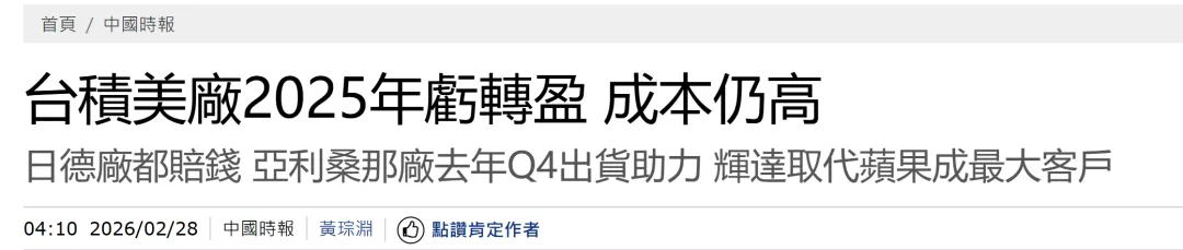 岛内舆论认为,从年报数据看,台积电的大陆布局表现优异。台湾应停止过快地将半导体产业链转移至美国,相关产业需要重新评估并积极布局大陆市场。