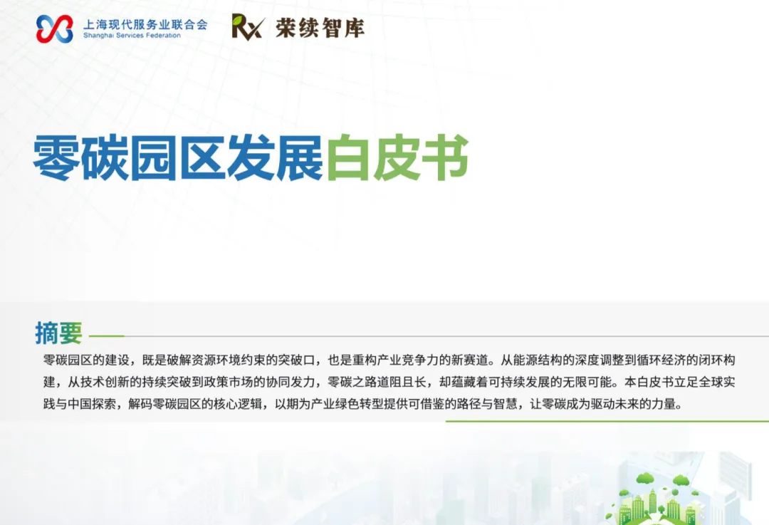 荣续智库与上海现代服务业联合会联合发布《零碳园区发展白皮书》。该书聚焦零碳园区建设核心要素,梳理关键组成部分及相互关系,剖析作用机制与实践路径,为零碳园区规划、建设与运营提供理论依据与实践指导。