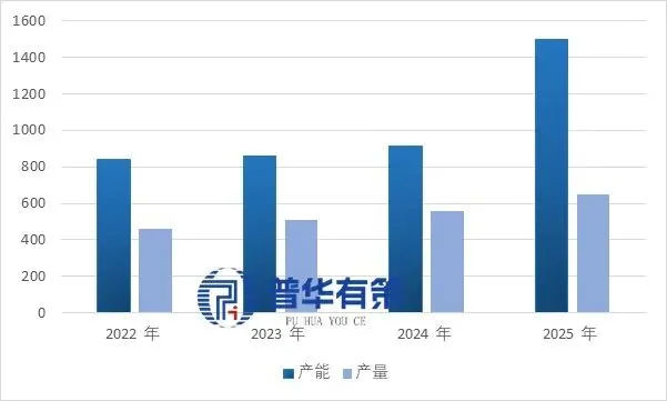 炭黑行业经过多年的迅猛发展后,逐渐趋向稳定。2022年、2023年、2024年和2025年上半年,我国炭黑产能分别为843万吨、860万吨、912.70万吨和964.70万吨,产量分别约为460万吨、510万吨、560.75万吨和291.10万吨,2024年度开工率约为61%,2025年上半年开工率约为60%。
