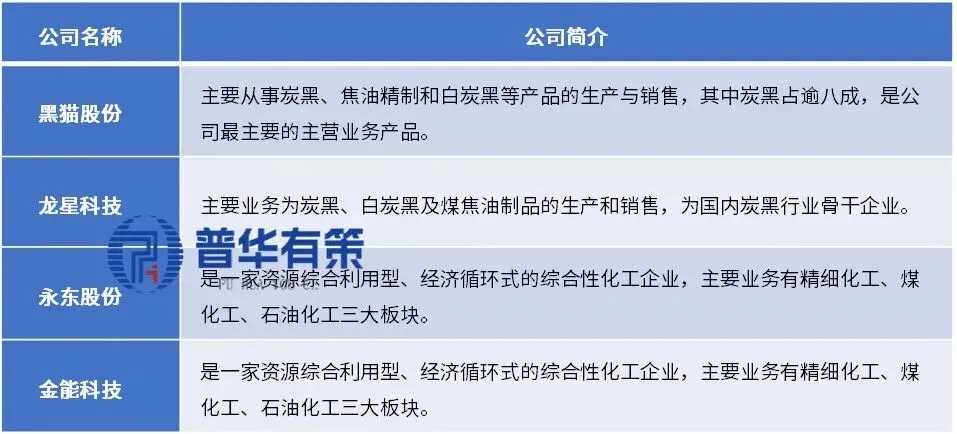 主要竞争企业包括黑猫股份、永东股份、金能科技、龙星科技等,具体如下: