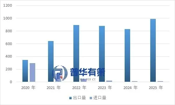 2020-2025年中国焦炭进出口规模(万吨)