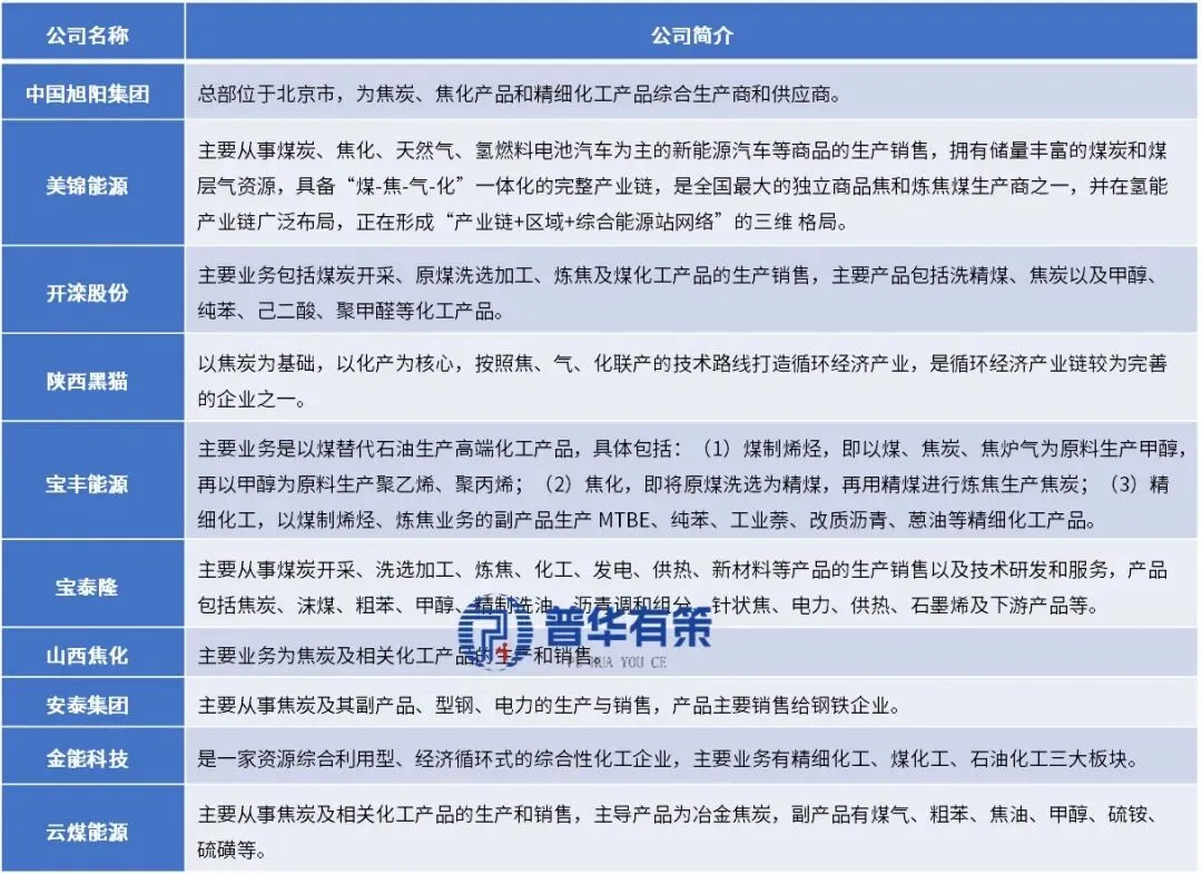 主要竞争企业包括中国旭阳集团、美锦能源、开滦股份、陕西黑猫、宝丰能源、宝泰隆、山西焦化、安泰集团、金能科技和云煤能源。