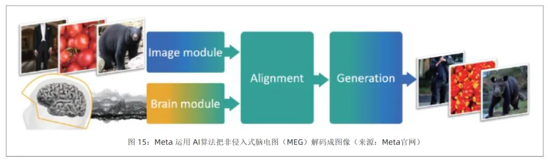 非侵入式脑机接口则指向更广阔的 “增强” 场景,为普通人带来全新的人机交互能力,生成式 AI 的应用彻底改变了非侵入式脑机接口的技术逻辑。传统的脑电信号解码需要针对每个个体进行长时间校准,而大语言模型(LLM)的引入让 “通用解码” 成为可能。2024 年,Meta 的研究团队利用 AI 模型,实现了从脑磁图(MEG)信号直接重构受试者所听到的语音内容,解码准确率超过 70%;更惊人的是,德克萨斯大学的研究人员仅用非侵入式设备,就能将大脑活动 “翻译” 成连贯的自然语言句子,验证了非侵入式脑机接口的通用解码能力。科技巨头的入局,预示着消费级应用的快速到来,Meta 已研发出基于肌电图(EMG)的神经腕带,用户只需想象手指动作,就能控制 AR/VR 设备;苹果在 AirPods 中集成了脑电传感器专利技术;Snap 则推出了带眼动追踪的智能眼镜。这些产品虽然尚未大规模上市,但清晰地描绘了未来图景:神经接口将成为空间计算时代的标准交互方式,就像触摸屏之于智能手机时代。