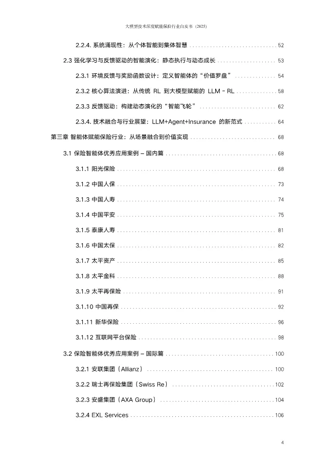 落地应用层面,AI 智能体成为核心抓手?,深度渗透保险产品设计、核保定价、理赔服务、客户运营全链路,汇总了阳光、人保、平安等国内险企,以及安联、瑞士再保险等国际机构的上百个落地案例,真实呈现技术落地的实际价值。