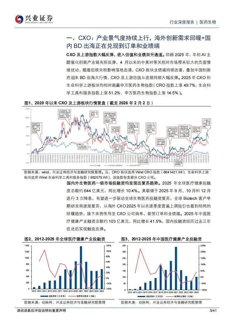 美联储于2025年9月、10月和12月进行了3次降息,全球生物医药一级市场的融资环境显著改善,全年融资总额达到约644亿美元,同比增长10.4%。这种资金端的修复直接反馈到了研发需求上,尤其是海外中小生物医药企业(Biotech)的早期研发询单量开始出现回升趋势。中国市场的表现更为抢眼,2025年医疗健康产业融资总额约为103亿美元,同比增幅高达41.5%,在经历三年低迷后实现了确定的触底反弹。