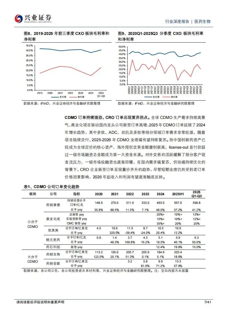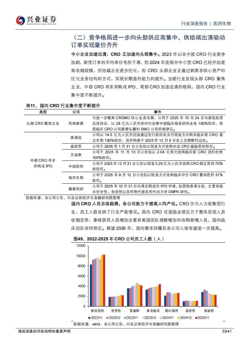 同时,国内市场的供给端也在加速优化。许多缺乏竞争力的小型CRO和CDMO企业在过去两年的低迷期中退出市场,行业集中度不断向头部供应商集中。这种竞争格局的改善,使得头部公司如泰格医药、昭衍新药等在谈单时具备了更强的议价能力,临床CRO和临床前CRO的季度毛利率在2025年下半年均出现了回升迹象。