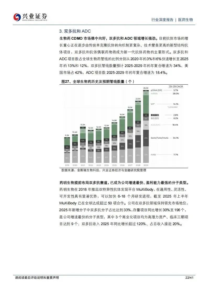 大分子领域则呈现出向头部集中的趋势。药明生物在全球大分子CDMO市场的规模持续扩张,其双抗、多抗项目数量在2025年保持了高速增长,双多抗项目管线占比显著提升。而在抗体偶联药物(ADC)这一高景气细分赛道,药明合联展现了极强的统治力。药明合联的客户数量和项目数保持快速增长,截至2025年其全球市占率进一步稳固,并在无锡、常州等地区完成了多项产能扩建。