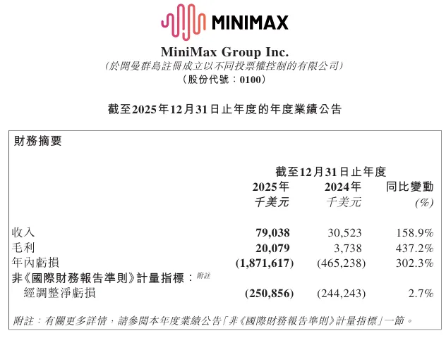 今年1月初,MiniMax才在港股上市,而财报时间节点是2025年12月31日止,因此在报告期,MiniMax并未上市。