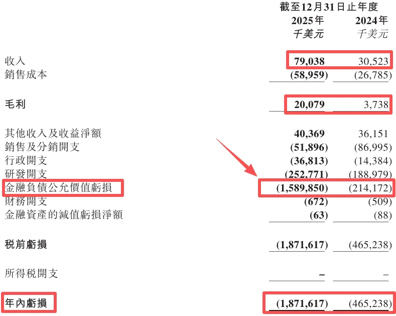 因此随着估值越高,MiniMax的账面公允价值亏损越大,但均为非现金项目。