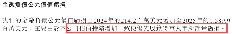 去年,MiniMax计提了一笔15.9亿美元的金融负债公允价值亏损。原因是,公司估值持续增加,导致优先股录得重大重新计量亏损。MiniMax是对赌上市的,绑定了上市时间的强约束融资条款。因此,优先股本质是“明股实债”的金融负债。