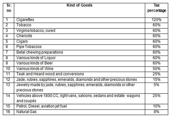 此税项以前对于酒类产品是按产品容积计税。《2024年缅甸联邦税法》更改了计税方式,将酒类商品的进口特殊商品税率提升到: