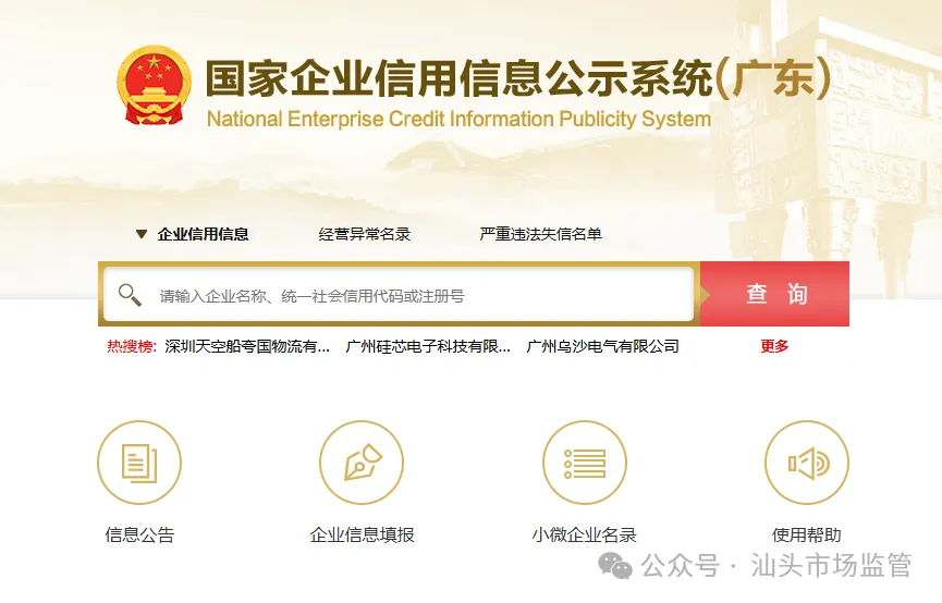 网址:https://gd.gsxt.gov.cn,点击【企业信息填报】。