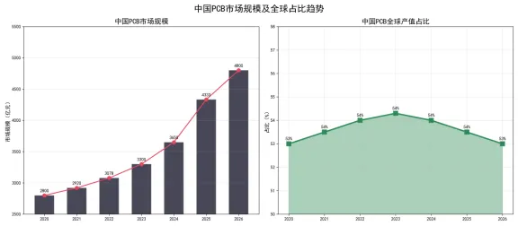 图3:中国PCB市场规模及全球占比趋势