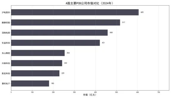 图5:A股主要PCB公司市值对比(2024年)