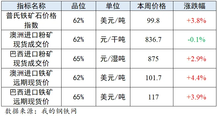 1.铁矿石价格(市场以普氏62%价格指数为定价基准)